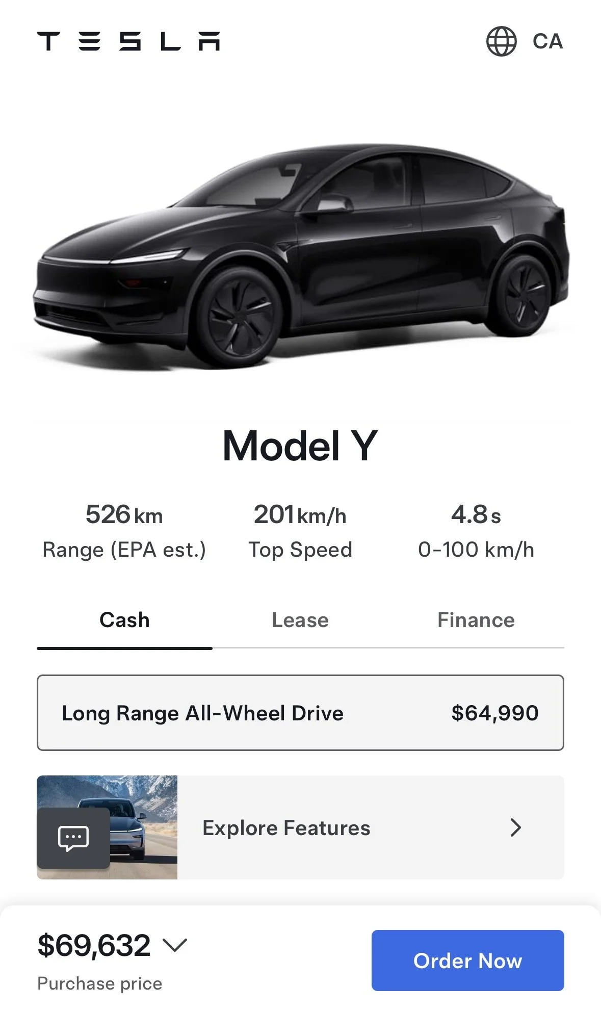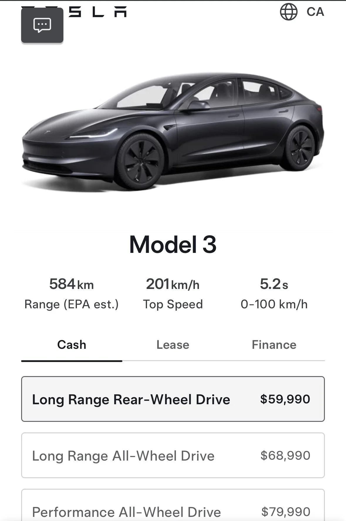 The options are: CASH, LEASE, or LOAN through TESLA or through a self-arranged loan i.e. through a Canadian bank.